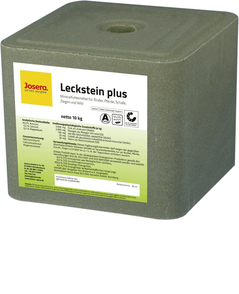 JOSERA Leckstein Plus on väärtuslike mikroelementidega rikastatud soolakivi, mis on käepärases plokikujul. Kvaliteetne kivim ja looduslik sool varustavad teie loomi oluliste elektrolüütidega naatriumi ja kloori kujul.